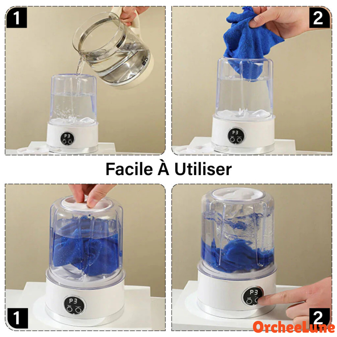 Libérez-vous des machines publiques sales et chères. Cette mini machine ultra-portable et rechargeable par USB vous donne le pouvoir de laver vos essentiels sous-vêtements, chaussettes, vêtements de bébé en seulement 10 minutes, où que vous soyez